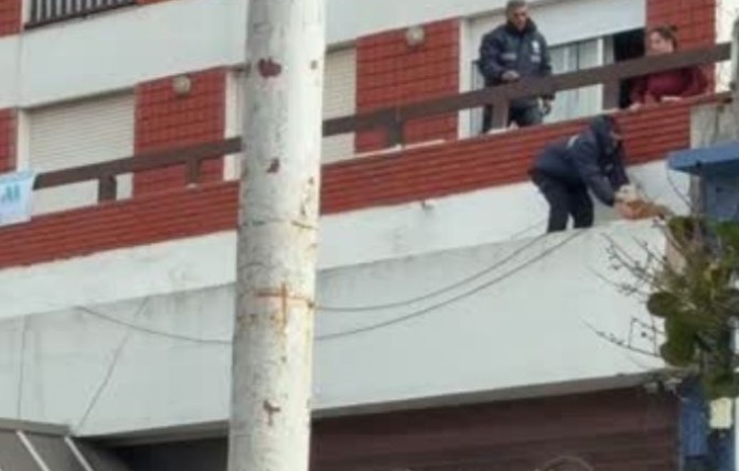 Integrantes de la flamante Guardia Urbana tuvieron que intervenir en un rescate. Fueron convocados a un edificio de avenida 3 y paseo 107, donde un perro había quedado en una cornisa.
