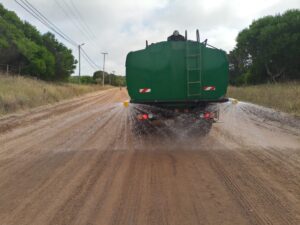 Además, las cisternas realizan el riego de calles y espacios verdes de Acceso Sur, Norte , Boulevard, la rotonda de Los Pinos, y por el camino que vincula Villa Gesell con las localidades del sur, con el objetivo de mantener la compactación del suelo en los pasajes más recorridos por residentes, turistas y servicios públicos del partido.