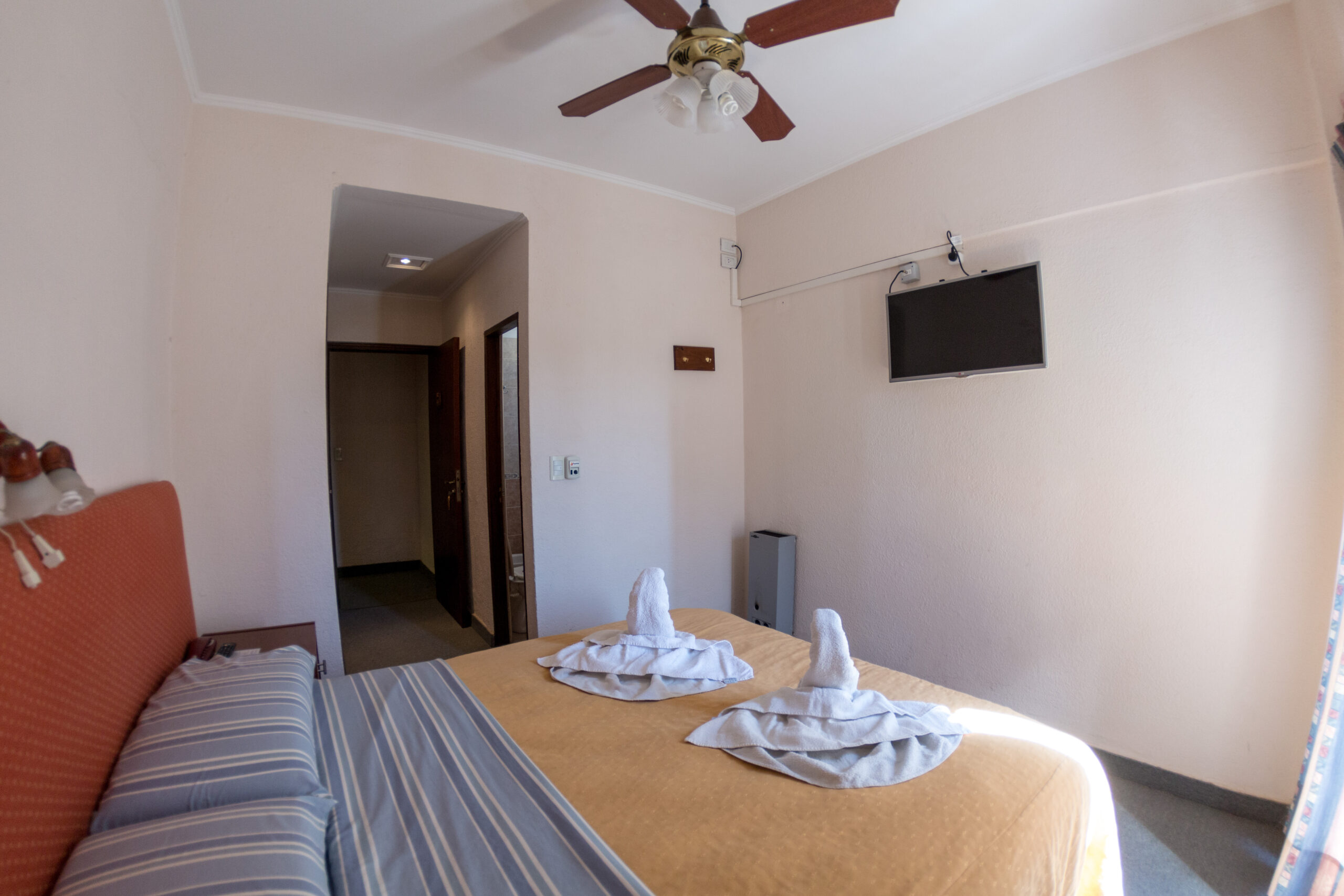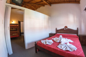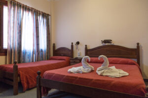 El hotel está totalmente alfombrado, los departamentos hoteleros de 4 hasta 6 personas cuentan con dos habitaciones integradas con un baño, sommier, LCD de 32´ en la matrimonial y TV de 14´ en la habitación de cama singles, caja de seguridad y secador de pelo.