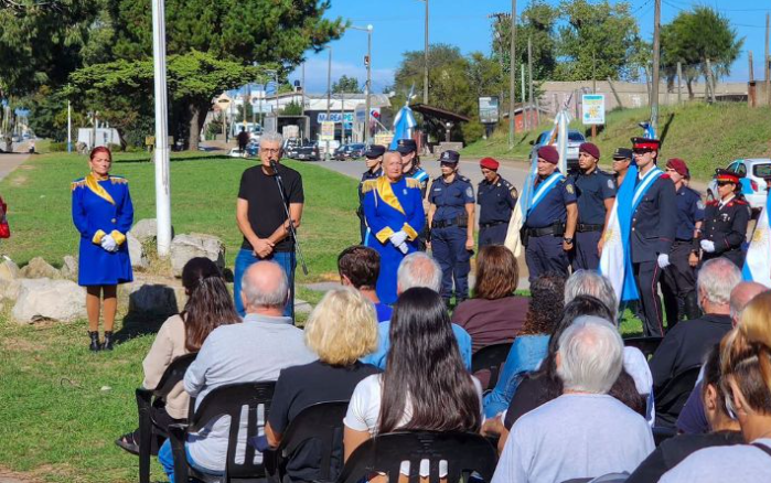 Del acto participaron instituciones de la comunidad, escuelas, integrantes del cuerpo de bomberos y vecinos que se acercaron para rendir homenaje y mantener viva la memoria de quienes combatieron en 1982.